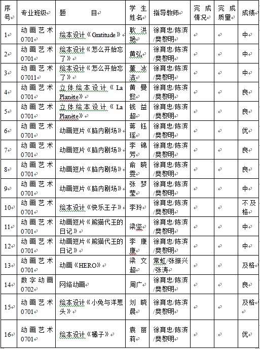 公共空间艺术系2008届毕业设计中期答辩成绩公布如下: