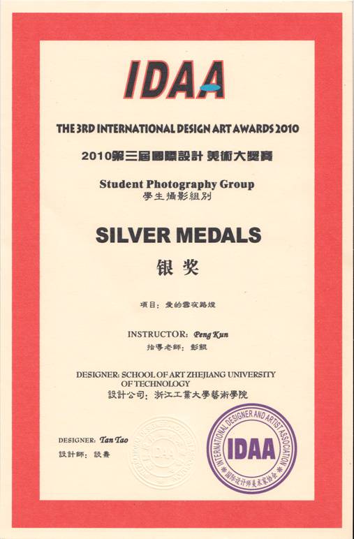由基础部指导选送的学生作品荣获第三届国际设计 、美术大奖赛摄影组银奖