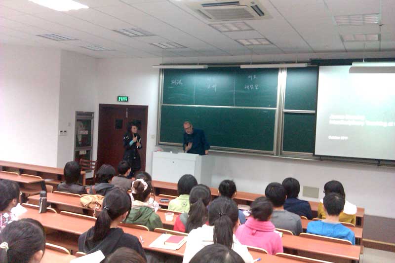 10月25日美国卡内基梅隆大学JAMES DUESING教授来我院讲座。JAMES DUESING教授介绍了美国卡内基梅隆大学艺术学院的教学模式,并播放了学生的动画作品和本人创作的动画作品。JAMES DUESING教授专注于研究电脑技术与媒体艺术的交互应用,将现代三维互动技术应用于艺术创作中,创作了一系列独立动画短片。讲座结束后,动画系师生与JAMES DUESING教授进行了互动问答,内容丰富,形式活泼,取得了圆满效果。