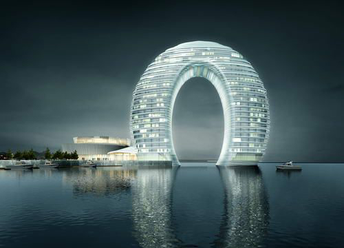 湖州喜来登温泉度假酒店位于太湖南岸,是国内首家水上白金七星级酒店,由世界知名建筑师马岩松先生主创设计,建筑外观为指环造型,作品《钻石》正是巧妙地把握了雕塑与酒店的关系,提出共生、共融的创意理念。通过钻石与指环的联结,形成一个有机体,又以钻石高贵的气质体现出酒店不凡的品质。方案理念与形式受到主办方飞洲集团企业各部门评审和专家评审的一致认可,最终经过一个月的网络投票后,获得此次雕塑大赛一等奖。