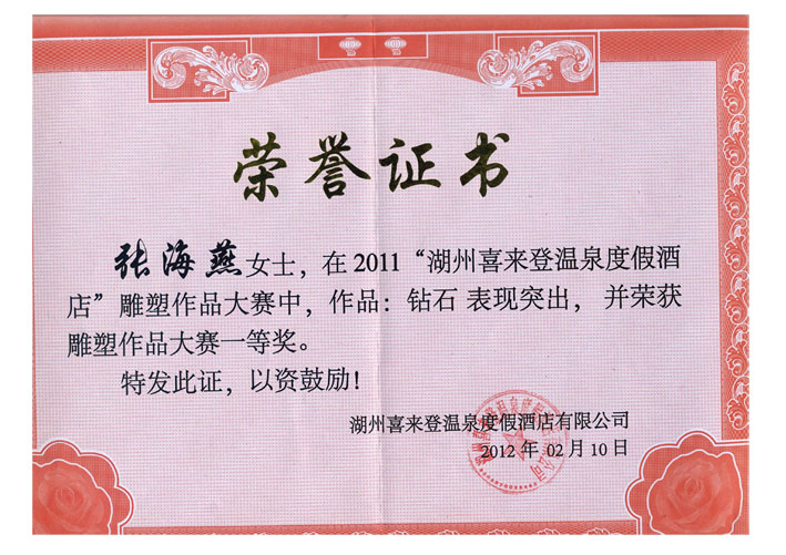 近日,从2011湖州喜来登温泉度假酒店雕塑作品大赛传来喜讯,由我院副院长张新宇教授带领的公共艺术研究生创新团队精心准备参与方案征集,最终经过多轮评比筛选,由张海燕同学创作的的雕塑作品《钻石》从近千件征集作品中脱颖而出,荣获大赛一等奖,奖金5万元,。