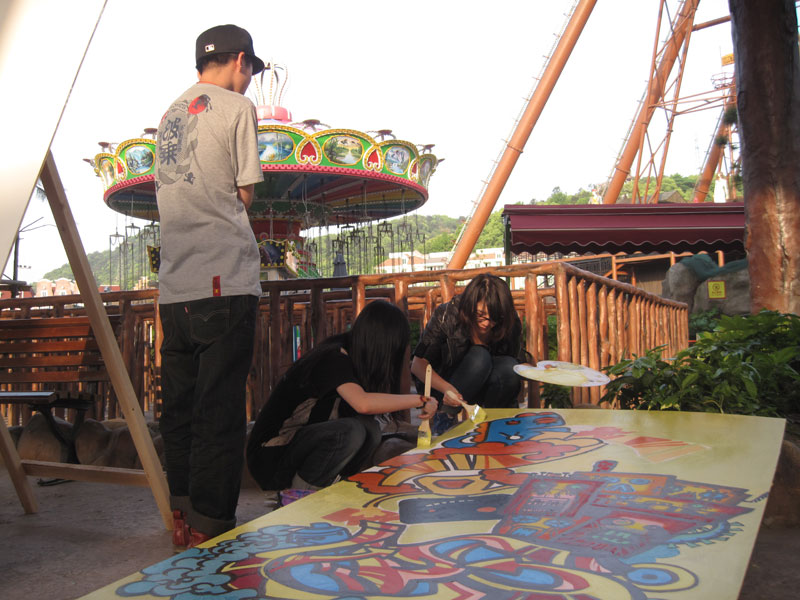 4月21日—4月27日期间,第八届中国国际动漫杭州乐园分会场活动杭州乐园首届新锐艺术节创意涂鸦大赛如火如荼的举行,我院动画系通过在学院内征集作品并初选出本科生及研究生共19名参与此次活动。本次活动共有浙江工业大学、浙江科技学院、中国美术学院、浙江传媒大学、杭州师范大学等十余所高校的动漫专业学生参与,活动期间杭州乐园照常开放,游客可以在活动期间与参赛选手交流、观看,有些有兴趣的游客还纷纷与选手合影。同时本次活动还有杭州电视台以及杭州电视台综合频道 生活频道等多家媒体报道。我院学生“沈一帆,范祖荣”等多名同学都接受了媒体采访。