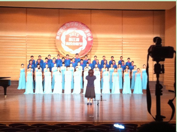 9月26日,2012年浙江省高校合唱节落下帷幕。我校选送曲目大合唱《望月》、《祖国不会忘记》(声乐指导、指挥:章峥;钢琴伴奏:鲁一)喜获二等奖。