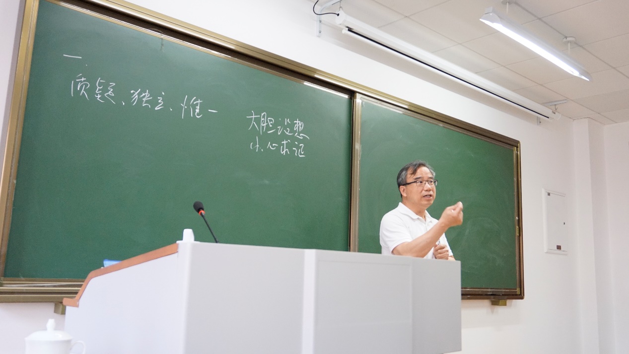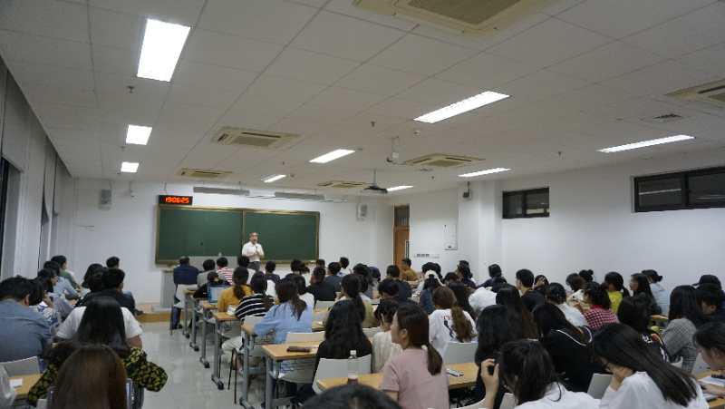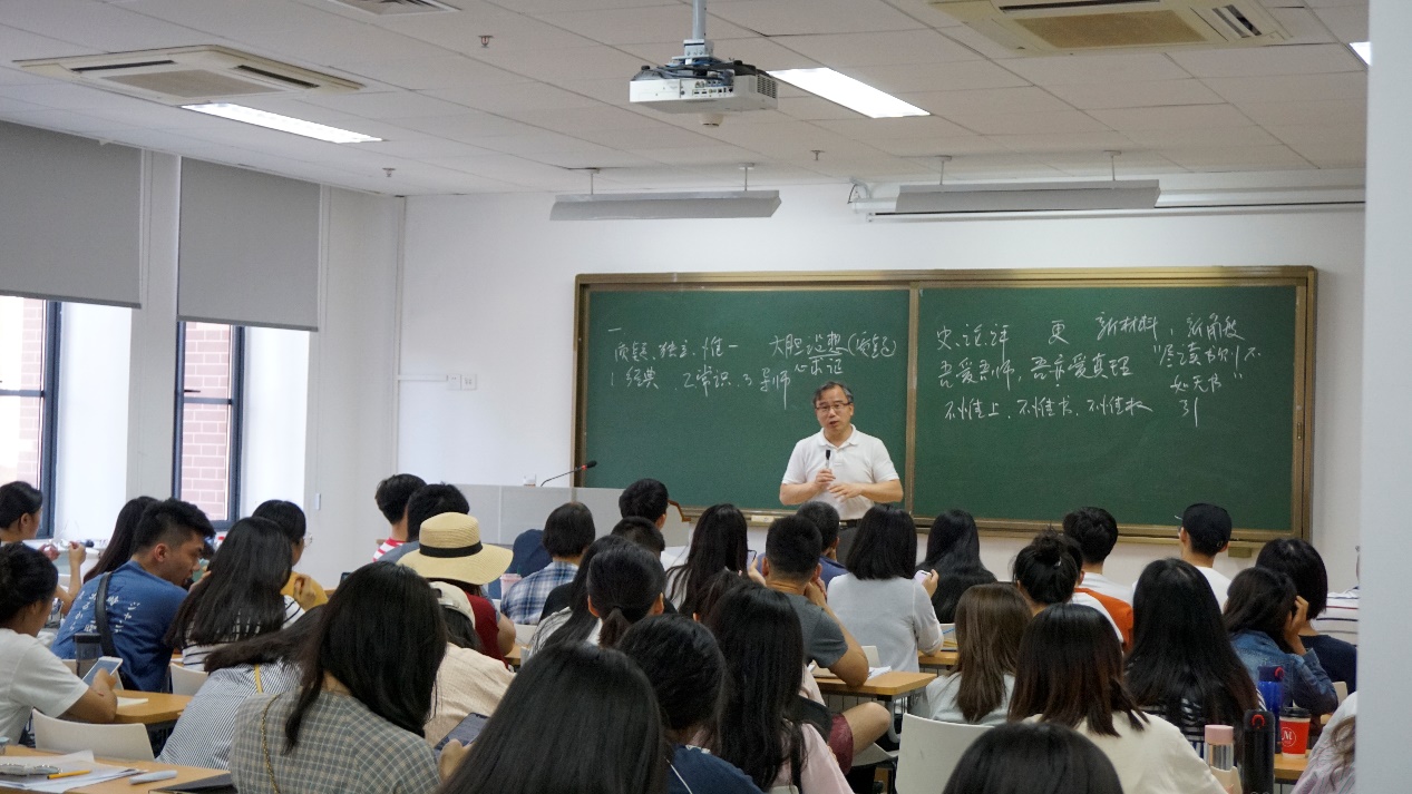 晚上的报告会中,侯样祥重点介绍了学位论文的常规性构架,并就在论文写作中该如何大胆合理地引用资料、避免侵权等方面进行了详细的讲解。
