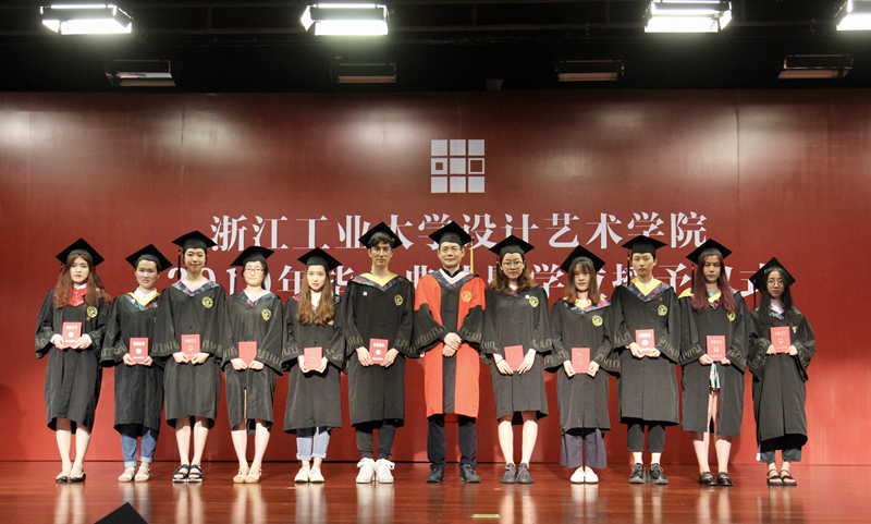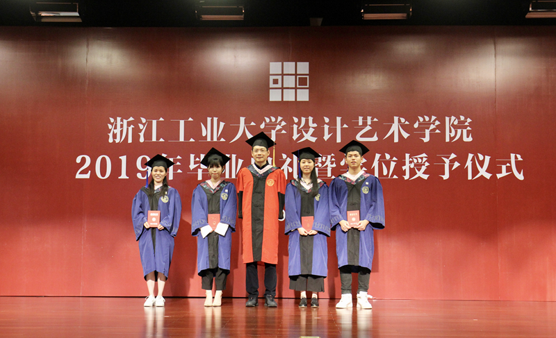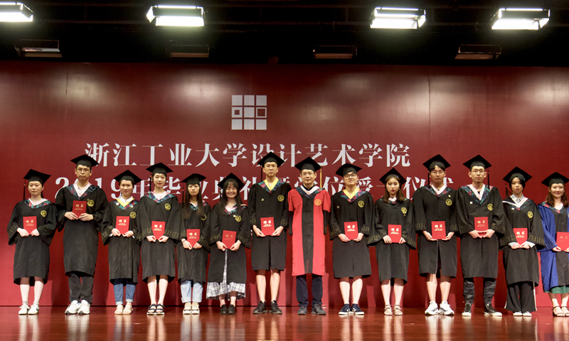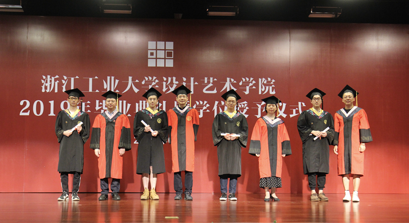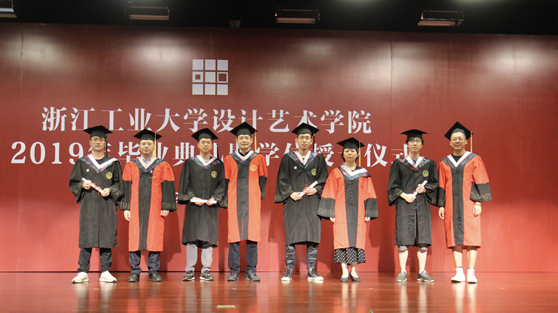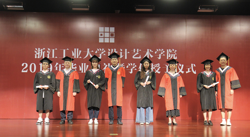 在学位授予仪式上,设计学一级学科带头人张新宇老师和各系主任分别宣读了授予2019届硕士研究生学位的决定及授予2019届本科毕业生学位的决定。毕业生们一一登上主席台,接受证书,由学院领导为其行“拨穗礼”并合影留念。