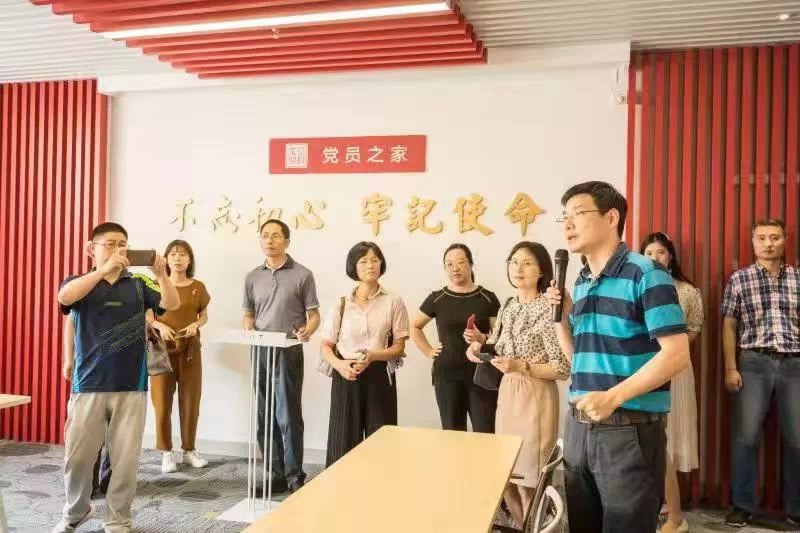 学员们在现场聆听了学院党委书记王建胜关于党员之家设计建设情况的介绍,详细了解了我校的党建工作与学院教师开展红色文化设计的相关情况。