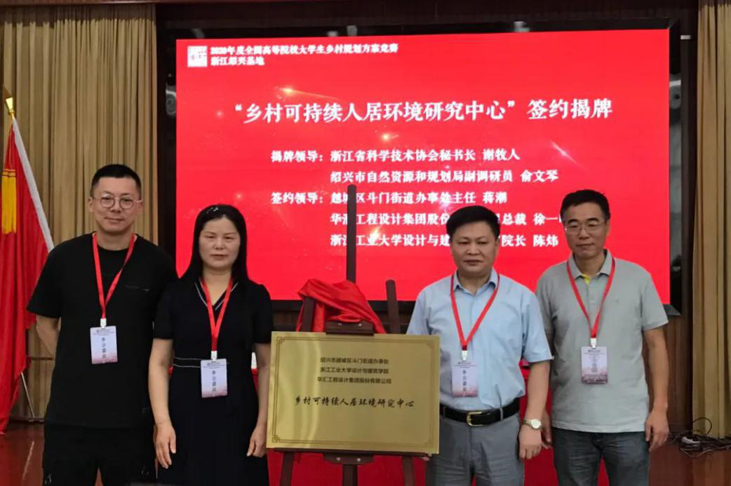 为将竞赛落到实处,持续跟踪璜山南村乡村振兴,在本次启动仪式上我院与华汇工程设计集团有限公司、斗门街道办事处挂牌成立了“乡村可持续人居环境研究中心”,与绍兴市越城区农业农村局挂牌成立了“璜山南村美丽乡村教学实践基地”。