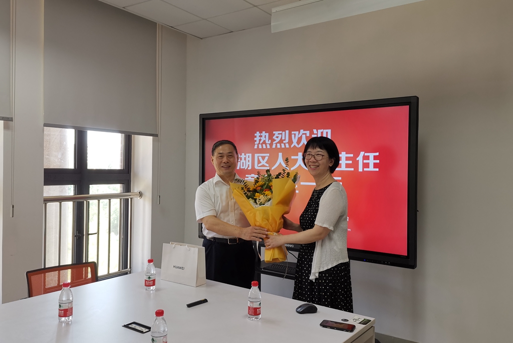 章岳定向黄薇赠送鲜花,并致以节日的祝福和诚挚的慰问,他对黄薇作为西湖区人大代表的履职情况给予了充分肯定,并希望她能继续履行“为人民服务”的职责,做好各项工作。
