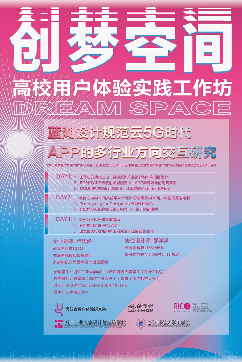 12月7日,为期三天的创梦空间-高校用户体验实践工作坊圆满落下帷幕。创梦空间-高校用户体验实践工作坊由浙江工业大学、浙江师范大学、乾学优行者研究院以及南京朝享者网络科技有限公司联合举办,指导老师团队由陈星海、肖珍(校内导师)、卢禹佟、邵洋洋(企业导师)组成。该工作坊受到教育部产学合作协同育人项目(201802218004、201902177004)的支持。