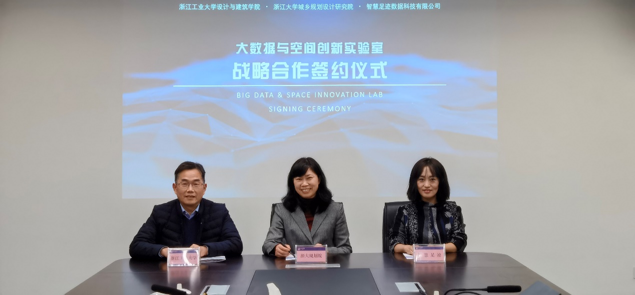 12月30日下午,我院与浙江大学城乡规划设计研究院有限公司、智慧足迹数据科技有限公司共建“大数据与空间创新实验室”的战略合作签约仪式在浙大规划院举行。院长陈前虎、浙大规划院院长厉华笑、智慧足迹副总经理赵华等3家单位10余位代表共同参加会议。