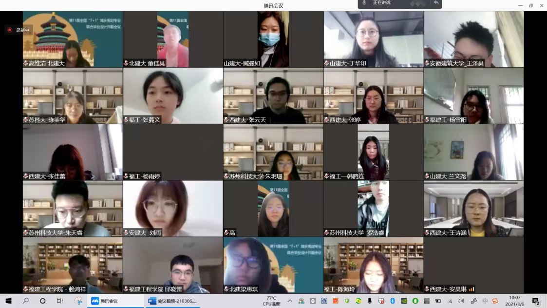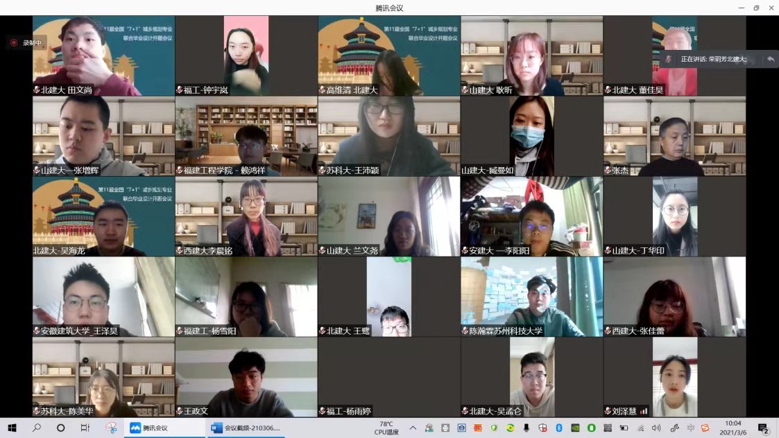 3月6日,第十一届全国城乡规划专业 “7+1”联合毕业设计举行了线上开题会。此次联合毕业设计由北京建筑大学主办,我院城乡规划系周骏、徐鑫、龚强三位老师及参与联合毕设的8位同学出席会议。