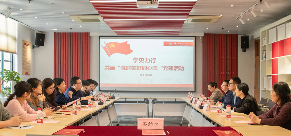 4月21日下午,学院党委与学校计划财务处党支部共同开展了共画“院财美好同心圆”党建活动。学校计财处处长何兴,学院党委书记张榄,计财处党支部书记、副处长章卫兵,计财处副处长凌娟亚,计财处党支部副书记、资产经营公司财务总监顾浙标,计财处教工党员代表和学院师生党员代表20余人参加活动,活动由学院党委副书记林敏喜主持。