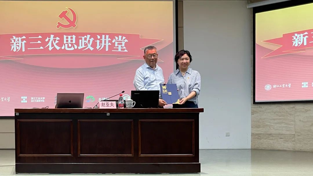 会上,学院党委书记张榄向赵亚夫颁发“新三农”思政讲堂讲师聘书。