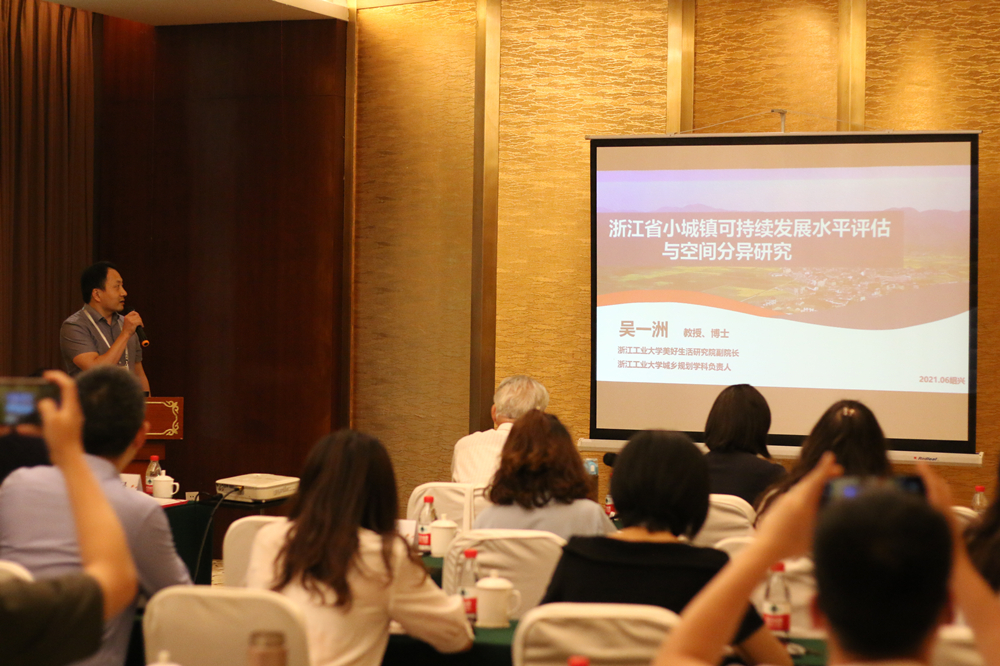 学院院长陈前虎教授的主旨报告为《美丽城镇,美好生活——揭秘改革开放以来浙江小城镇发展转型过程》。报告指出小城镇的持续特色发展是浙江城乡融合发展的奥秘所在,并从产业发展阶段、居民生活方式、企业生产方式、政府职能转变和人居建成环境等方面,梳理了浙江省小城镇的发展历程,对当前浙江省小城镇发展面临的问题进行了深入分析,提出了小城镇发展的新思想。