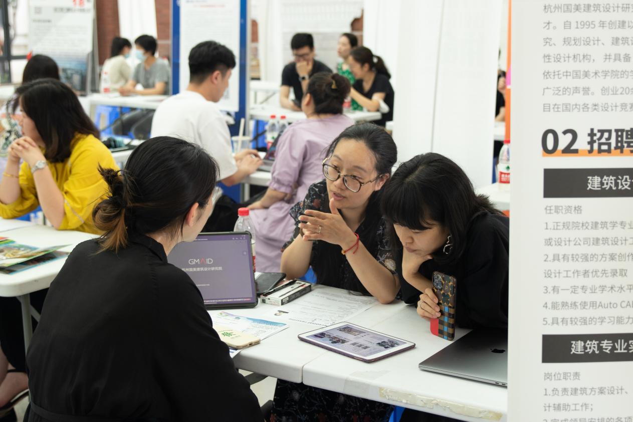 本次招聘会吸引了浙江大学城乡规划设计研究院有限公司、浙江工业大学工程设计集团有限公司、杭州瑞德设计股份有限公司、浙江东南建筑设计有限公司、圣都家居装饰有限公司、杭州飞思十工业设计有限公司、浙江绿城联合设计有限公司、热浪品牌策划有限公司等四十家知名企业参会,提供了建筑师、城乡规划师、产品设计师、环境设计师、视觉设计师等600余个就业岗位,最终吸引了线下近300名学生,线上近400名学生参加。初步达成就业、实习意向百余人。