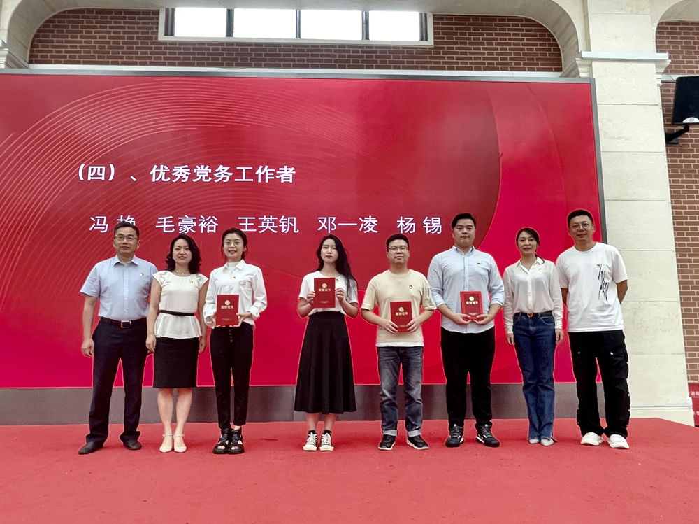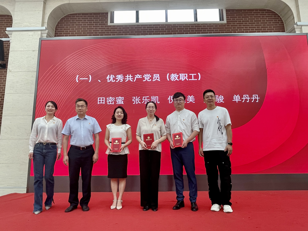 会上表彰了获得2021年度学院“优秀共产党员”、“优秀党务工作者”称号的师生党员,表彰了获得学院“先进党支部”称号的党支部。在随后的党员集体宣誓环节中,师生党员面向鲜红的党旗,在领誓人陈前虎院长的带领下,庄重举起右手,握紧拳头,庄严宣誓。