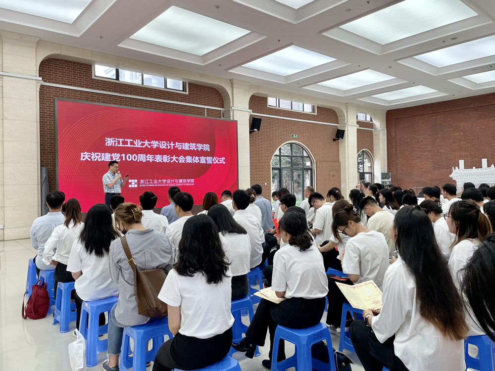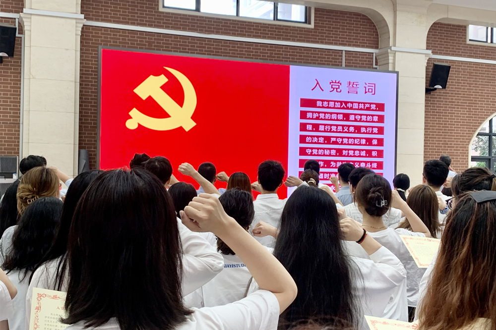 6月28日下午,在中国共产党成立100周年来临之际,学院党委在一楼大厅举行党员集体宣誓仪式。学院党委负责人、师生支部党员及2021年上半年新发展的党员参加此次活动。