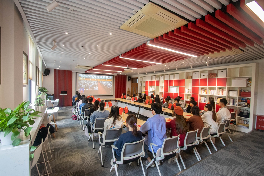 学院党委书记张榄、院长陈前虎、党委副书记林敏喜与师生党员代表近200人在学院楼一楼展厅收看开幕会直播。各党支部提前安排,党员们在党员之家、寝室、专教通过电视、网络等方式收听收看,并积极开展学习研讨。
