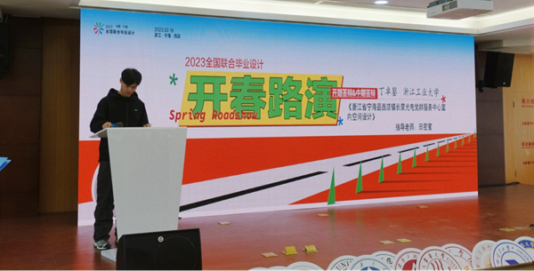 2月18日,环境设计系教师田密蜜与方振军带领环境设计与视觉传达的12名研究生与本科生参加了2023全国联合毕业设计“开春路演”暨校地融合系列活动。