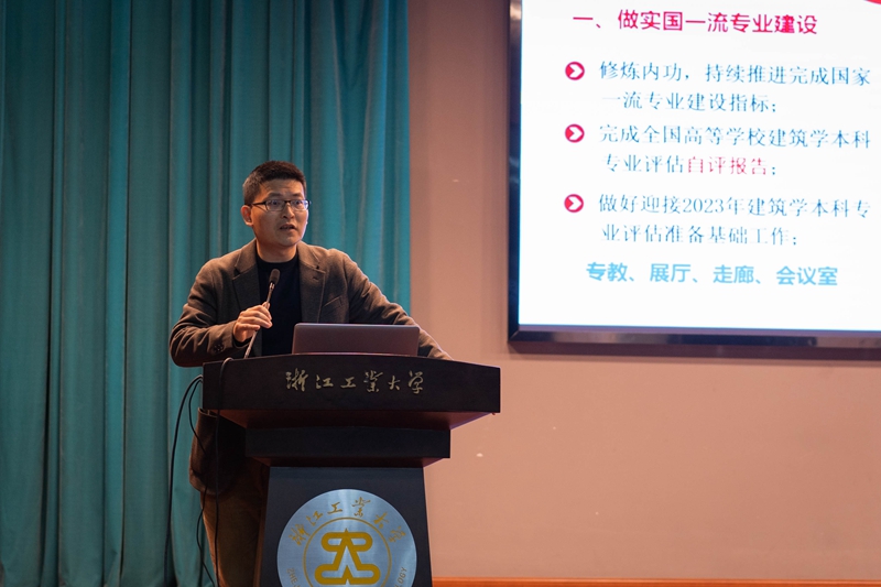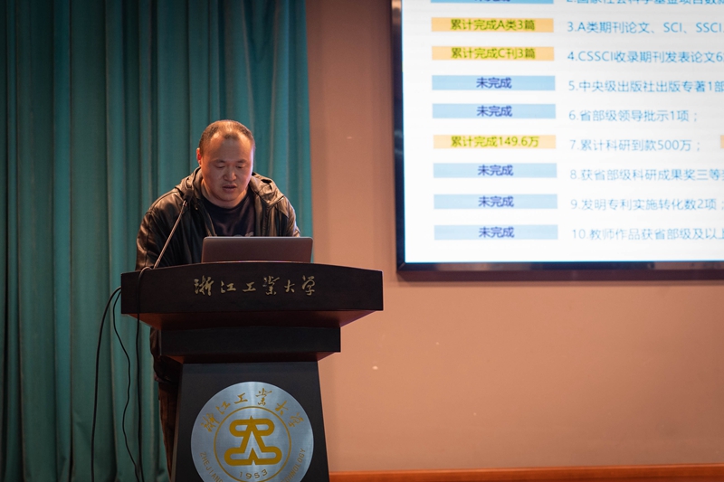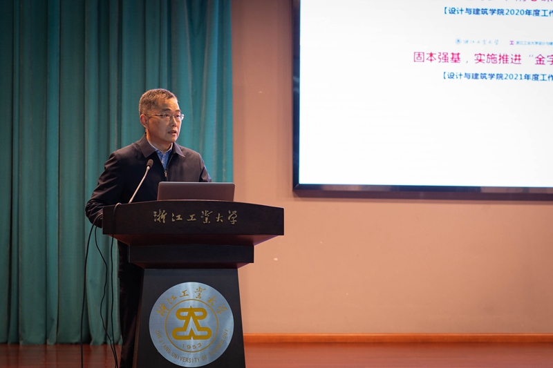 院长陈前虎以《同心同德,奋力“起飞”》为题,从指导思想、顶层设计、行动成效三方面总结了2022年的工作。一年来,学院,在党建思政与队伍建设方面,充分发挥党组织的战斗堡垒作用和党员的先锋模范作用,以党建引领学院中心工作,充分发挥学院在艺术和文化上的专业特长,以文化建设促“和谐学院”建设,内外两线工作同步推进;在专业建设与人才培养上,围绕“双万计划”与创新应用型人才培养目标,扎根浙江大地,依托信息技术,大力推进教学改革与人才培养模式创新;扎实推进“双万计划”的“金字塔”工程建设:基地建设-教材建设-课程建设-专业建设;在科学研究与社会服务上,本着“开放、协同、创新、共享”的理念,充分发挥浙江经济活跃、“先行先试”与“重要窗口”等地域优势,科研经费稳步增长;对内抓研究生培养的“成长扶梯”行动、科学研究的“2个1/4行动”,对外抓政产学研合作;扎实推进一流学科的“金字塔”工程建设:高水平论文-高层次项目-大平台+大成果+大团队。在接下来的工作中,学院将从制定科学目标、提高战略定力、提升战术能力等方面,以学科建设为主线,不断提升服务区域经济社会发展的“重大能力”,积极营造积极向上、有序竞合的学院文化,千方百计谋发展,同心协力创佳绩。