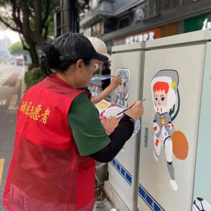 在绘制过程中,师生们顶着烈日,连续多日在街头根据设计样图,手持彩绘工具,调制颜料、描绘图案、填色。他们挥洒着汗水用心描绘墙上的每一处细节,画笔写意,表达迎亚运的激动心情。经描绘后的电箱变成城市街道的风景线,引得市民纷纷驻足观看与赞美。