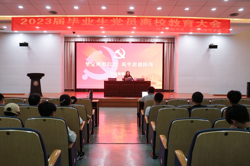 为深入开展学习贯彻习近平新时代中国特色社会主义思想主题教育,进一步加强毕业生党员的廉洁意识,筑牢廉洁防线,扣好“第一粒扣子”,6月15日下午,学院与信息工程学院联合开展2023届毕业生党员廉洁教育,校纪检监察室副主任沈姮为毕业生党员讲授廉洁教育专题党课。