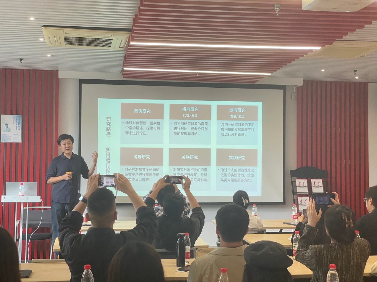周志老师从如何开展设计研究和如何进行设计写作两个方面,由概念到方法深入浅出地向在座师生传授了设计研究和写作的宝贵经验。通过此次讲座,视觉传达设计专业师生在寻找研究选题、匹配研究路径并进行学术写作方面都有了更深刻的理解,相信在本次讲座中收获的知识能在未来的研究实践中得到更好的运用。