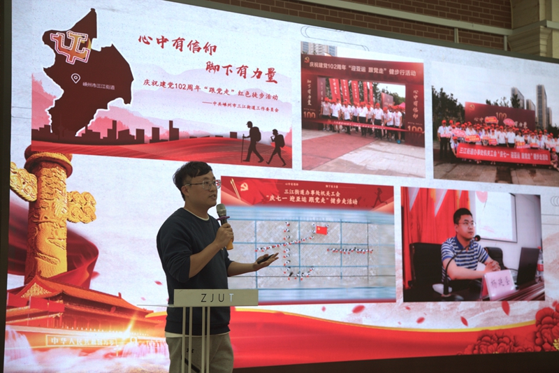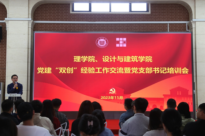 第二批全省高校党建“双创”培育创建样板支部、设计与建筑学院城规师生联合党支部副书记蔡璐璐以《教育助力 乡村振兴——浙工大城乡规划师生联合党支部在行动》为题,介绍了支部师生以实际行动引领全省美丽城镇建设,响应“千万工程”号召践行“八八战略”的特色实践。第三批全省高校党建“双创”培育创建样板支部、设计与建筑学院工设教师党支部书记张乐凯作经验分享,他介绍了支部从开展形式丰富的支部活动的1.0版本,到为师生办实事的2.0版本,再到支部科学研究重落地聚焦实事解难题的3.0版本,最后到政校党建共建焕发党建活力的4.0版本的创建历程,展现了支部在服务科研团队建设、服务学生成长发展等方面的示范引领作用。