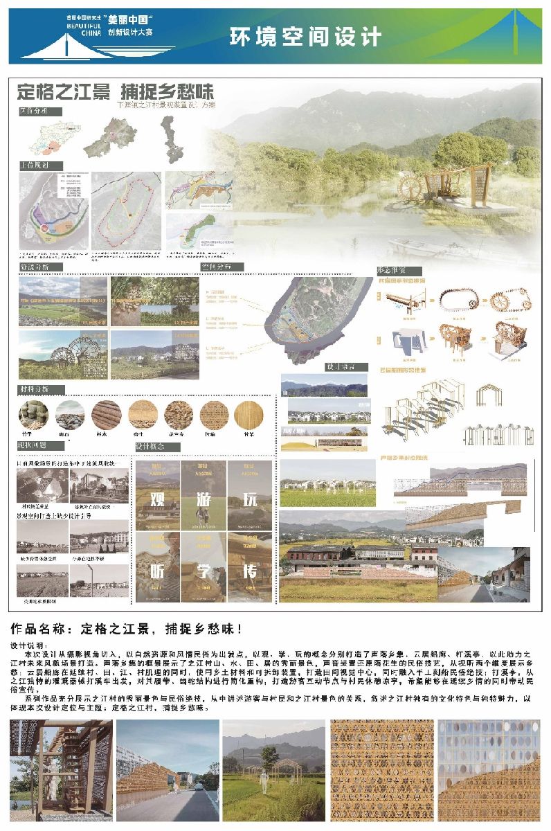 姜化霖、吴静月、周万云、陈金璐《定格之江景,捕捉乡愁味“下涯镇之江村景观装置设计》 指导老师:梅欹