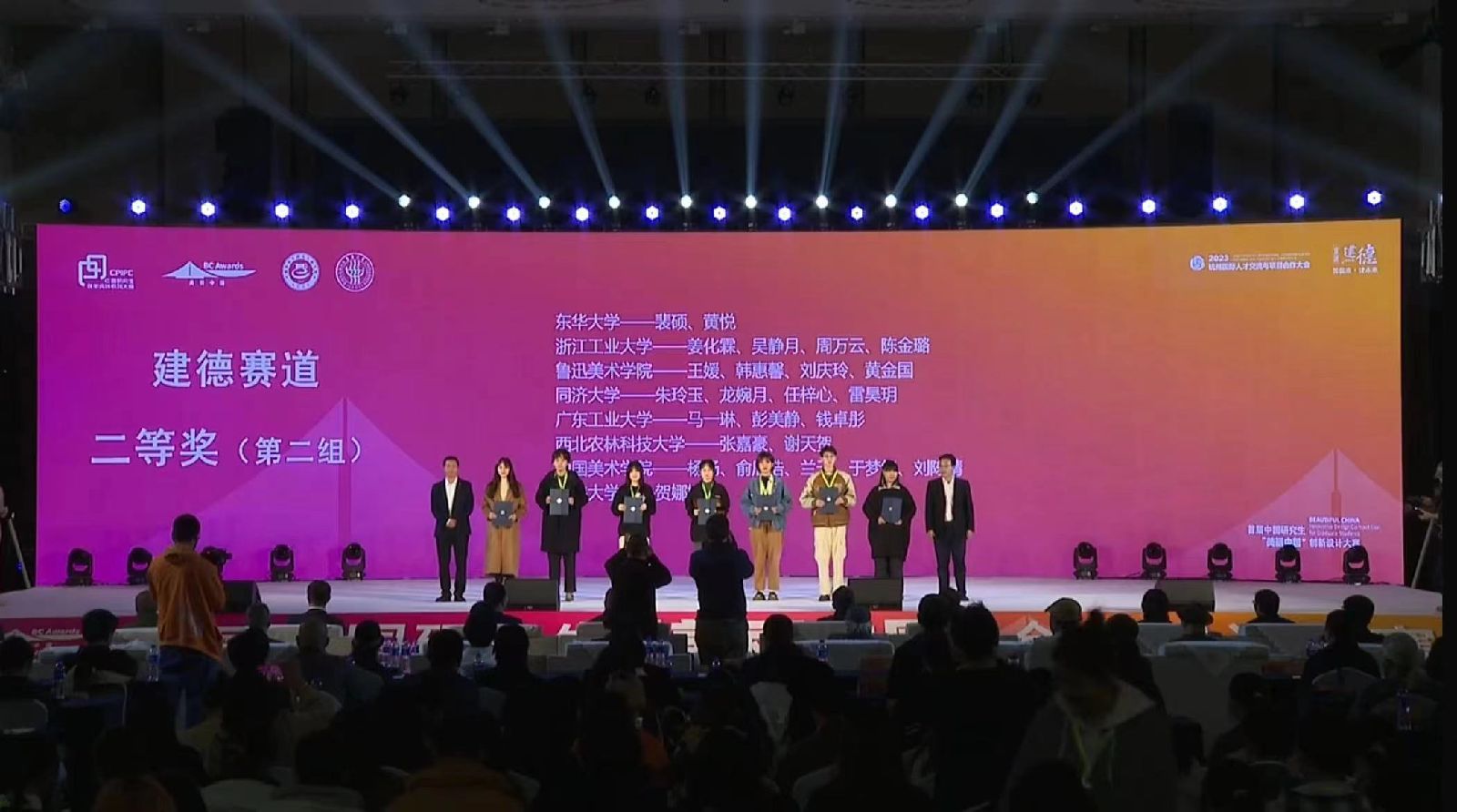 我院研究生积极参与,共有四支队伍进入三个赛道的总决赛路演,最后取得了全国一等奖一项和全国二等奖三项的佳绩。其中,城乡规划专业的《云上茶村,林峰共萃——共生视角下的林峰村乡村空间设计》(团队成员:章薇、严梓榕、方楚楠、刘颖胜、陆莹;指导教师为吴一洲和龚强)获得环境空间组一等奖;设计学环境设计方向与艺术设计环境设计方向团队的《“定格之江景 捕捉乡愁味”下涯镇之江村景观装置设计》(团队成员:姜化霖、吴静月、周万云、陈金璐;指导教师为梅欹)获得建德赛道环境空间设计二等奖,设计学工业设计方向的《即刻加电:无人快充加电车》(余佳航;指导教师为张露芳和张乐凯)和艺术设计工业设计方向的《SIMPLE DRAWING-智能马克笔注器机》(陈哲熠;指导教师为张乐凯)均获得工业产品设计二等奖。