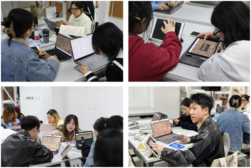 工作坊的中方导师由朱吉虹老师与刘懿老师共同担任,鼓励同学们与荷兰设计师们用英语进行互动交流,以个性化的创作编织出独特而富有深度的故事,并在设计过程中深化了对设计原理和创意流程的理解。两位荷兰导师特别强调让同学们在设计方案过程中不要囿于电脑与纸笔的方案呈现,而要走出教室,感知生活场景的关联并进行创意拍摄,分享拍摄过程及心得体会,由此思考更有意义的创意表达。