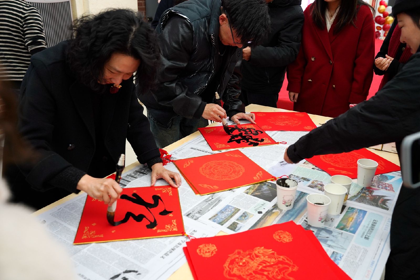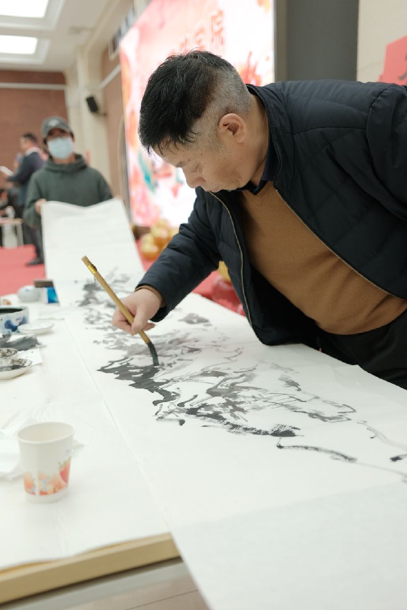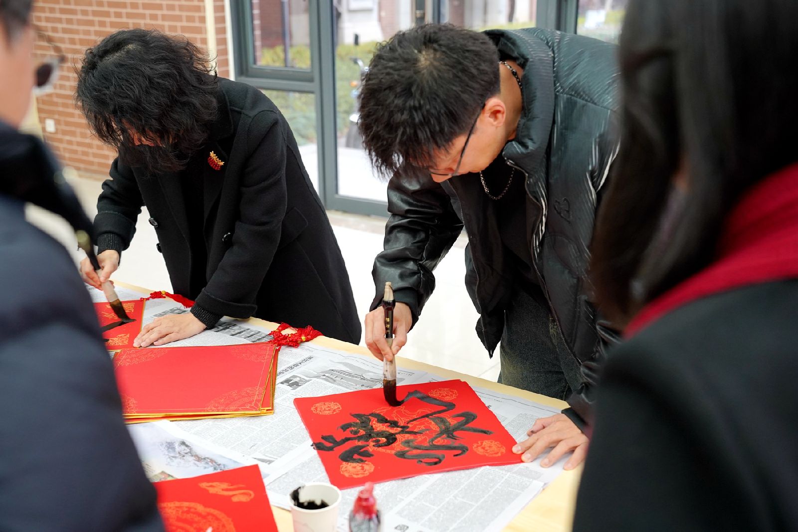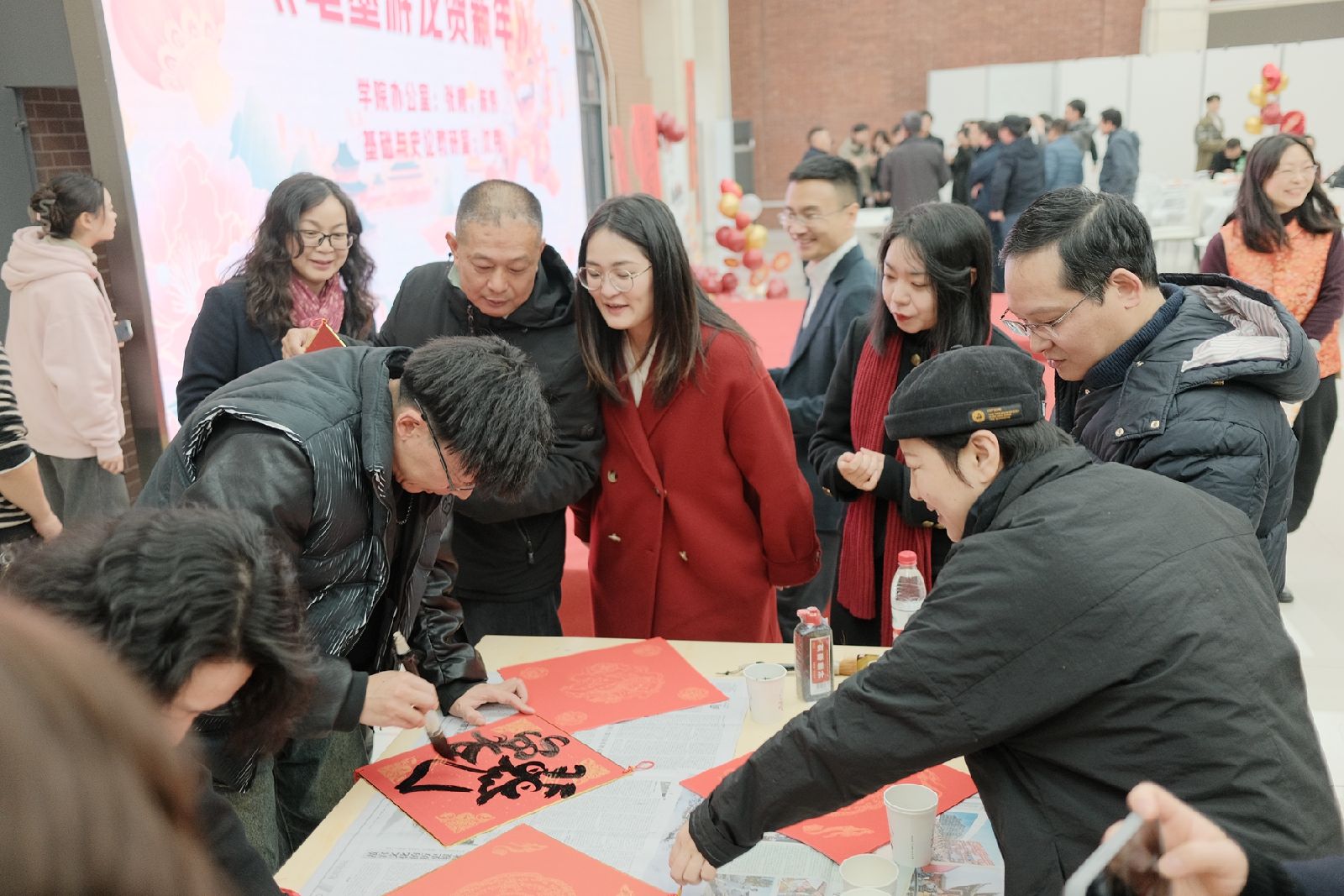 书画节目《笔墨游龙贺新年》吸引了众多老师围观,张榄、陈炜两位老师为现场老师书写福字并送上新春祝福,基础与史论教研室沈克老师绘就国画长卷《江山物语》,气势恢宏引来阵阵赞叹。