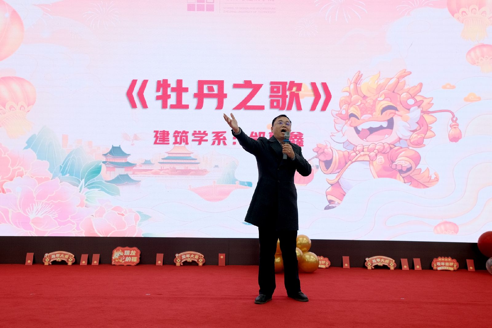 建筑系老师邰惠鑫带来独唱《牡丹之歌》,歌声嘹亮悠扬,让人沉醉其中。