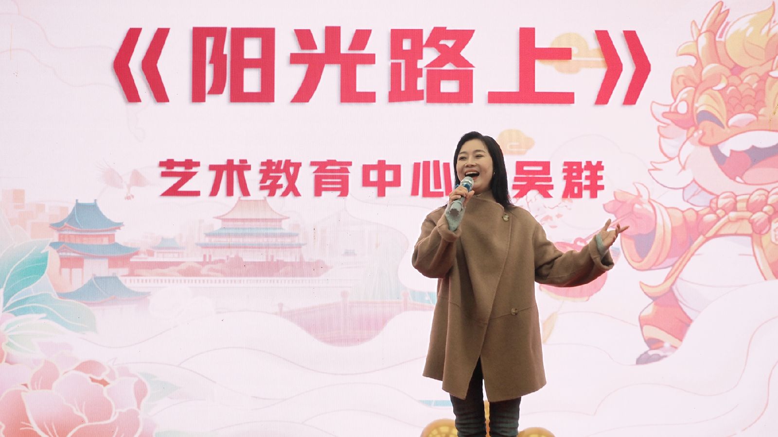 最后,由艺术教育中心吴群老师带来歌曲《阳光路上》,歌唱艺术家专业的力量燃起全场的热情,尽情绘出对2024年的美好愿景。