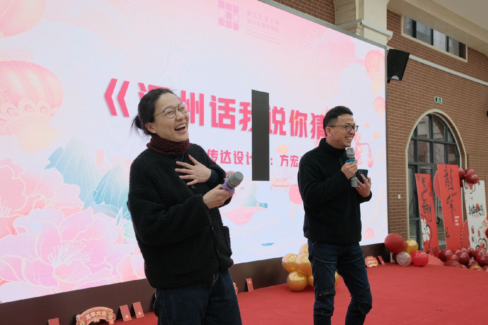 游戏环节和视传系老师方宏章的《温州话我说你猜》的互动节目带动场内气氛欢腾起来,老师们纷纷参与游戏和互动。
